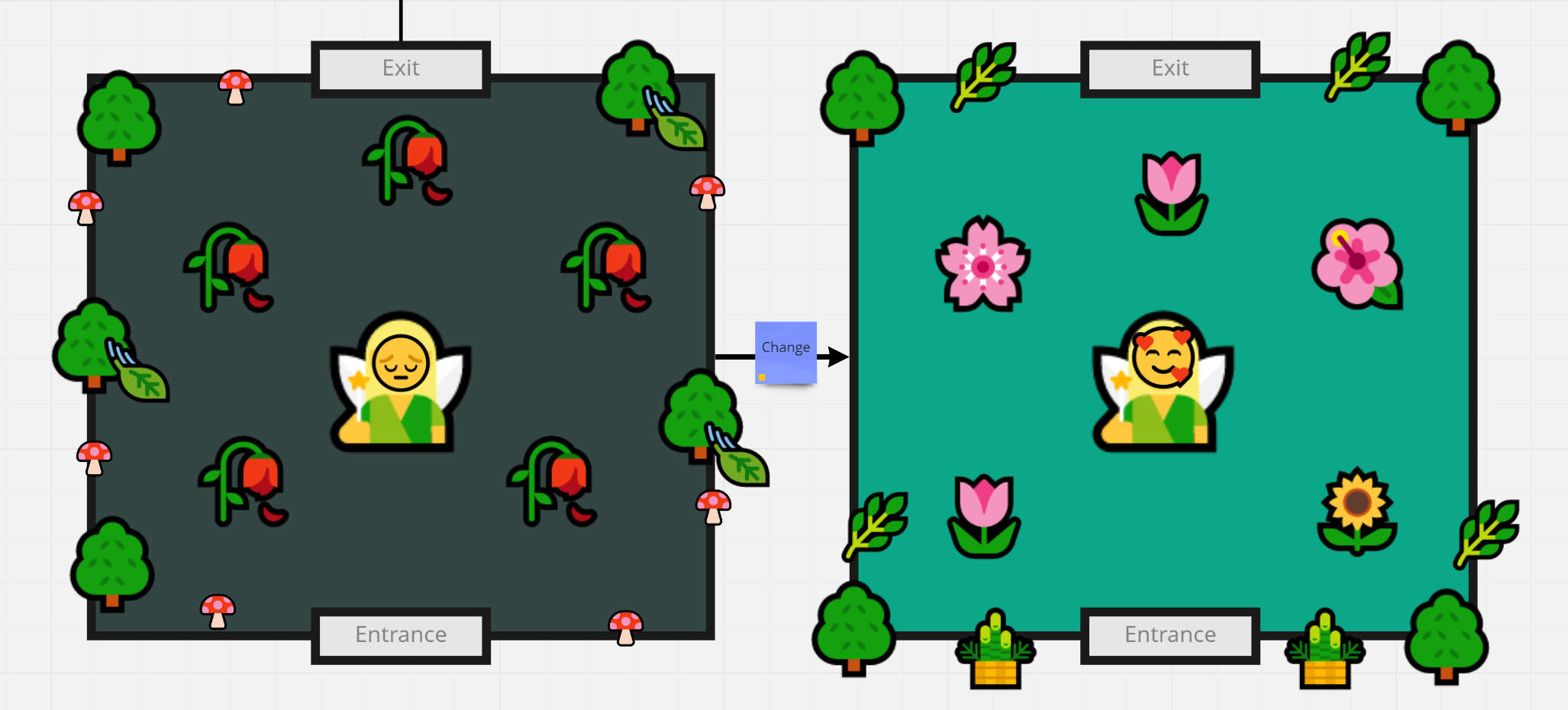 The physical place is transformed into a fairy forest by using holograms and magical props. The user's mind is represented as a magical garden, which is themed after A Midsummer Night's Dream. The users will be set on a magical journey: healing their minds by tending their gardens.