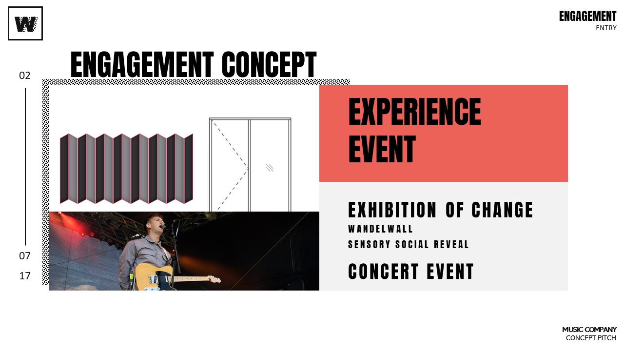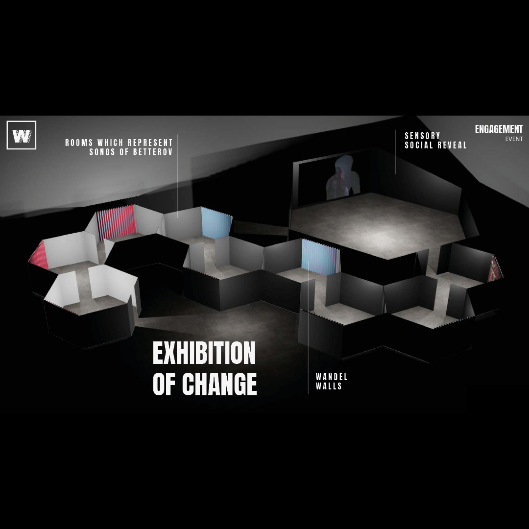 Concept Summary: We will let fans experience an art installation which visualizes their shared and collective experience of “WANDEL” (change), but also the deep connection to the artist and the relation to his work. The Installation pieces (lenticular walls seen in the pictures above) ask one to contemplate change, progress, time, and our role as observer vs. participant.