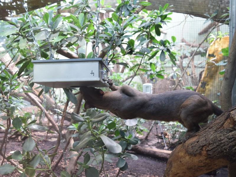 The fossa will be PaceBreaker’s first target group. In addition to their high readiness to adapt, fossa are very curious animals, where small extra feedings and occupations can do much to counter the development of stereotypical behavior. The response of their hunting instinct to the system can be seen as representative of the hunting behavior of many predators.