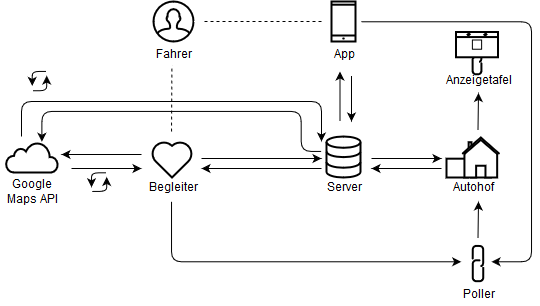 The idea is a communication and parking system that focuses on guaranteeing the driver a safe place to sleep and utilizing the parking space at the truck stops. The system simplifies the planning and search for parking spaces. There is also the "companion", an additional device that the truck driver takes with him on the journeys.